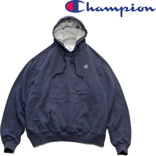 1点物◆チャンピオン目玉ビッグロゴ紺スウェットパーカー古着メンズXLレディースOKアメカジ90sストリートスポーツ中古トレーナーXXL7362216