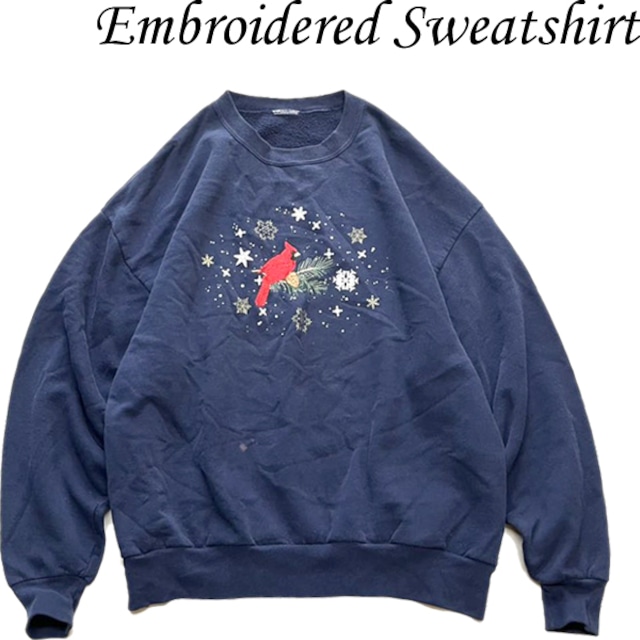 1点物◆ビンテージ90s紺バード鳥刺繍スウェット古着メンズXLレディースOKアメカジ90sストリート/スポーツUSAブランド中古アメリカ製?362285