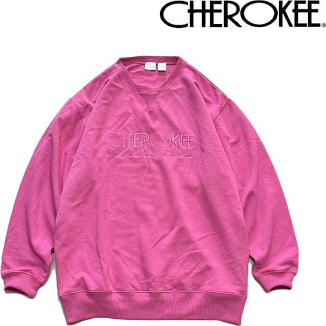 1点物◆CHEROKEEピンク前Vブランドロゴ刺繍スウェット古着メンズL/XLレディースOKアメカジ90sストリート/スポーツブランドトレーナー362280