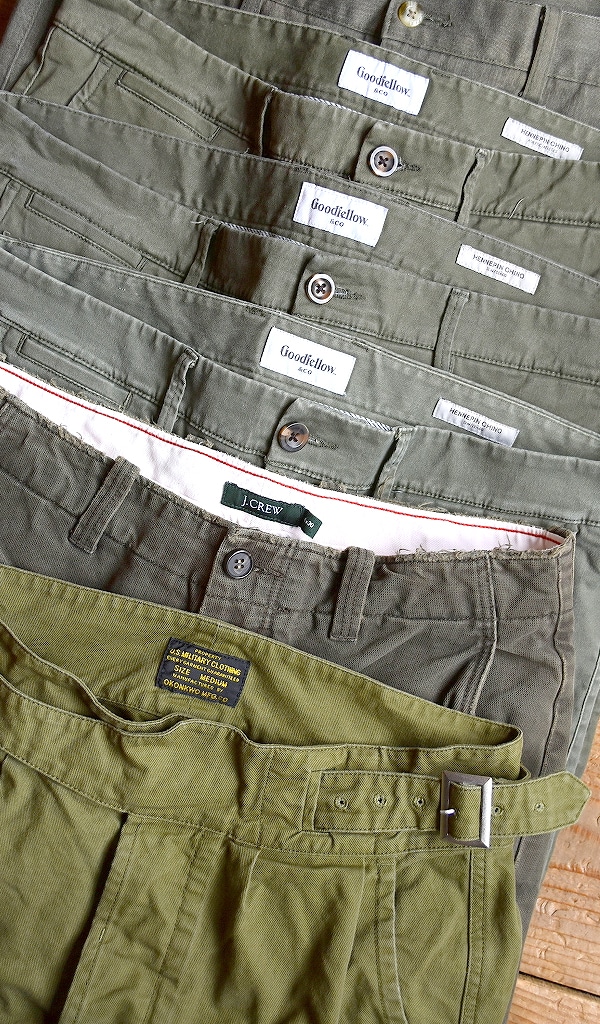色々なオリーブグリーン(緑)のチノパン入荷~
