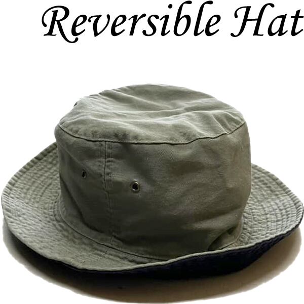 1点物◆リバーシブル紺バケットハット帽子サファリハット古着メンズレディースOKアメカジ90sストリートUSAキャップUSブランド/カーキ348416