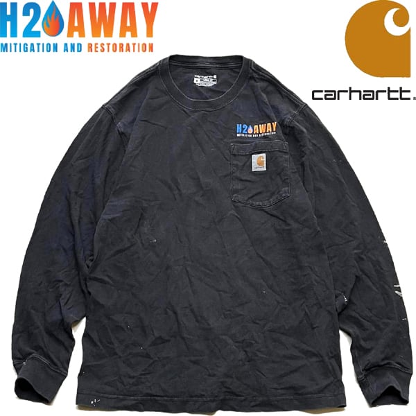 1点物◆カーハート雰囲気系ペンキ長袖ポケット黒ロンTシャツ古着メンズレディースOKアメカジ90sストリートスポーツMixワークブランド348440
