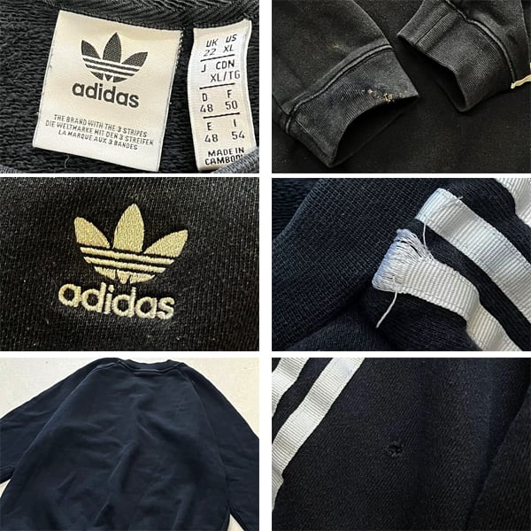 1点物◆adidasアディダス3本ライン黒スウェット古着メンズレディースOKアメカジ90sストリート/アウトドア白ブランド中古トレーナー348456