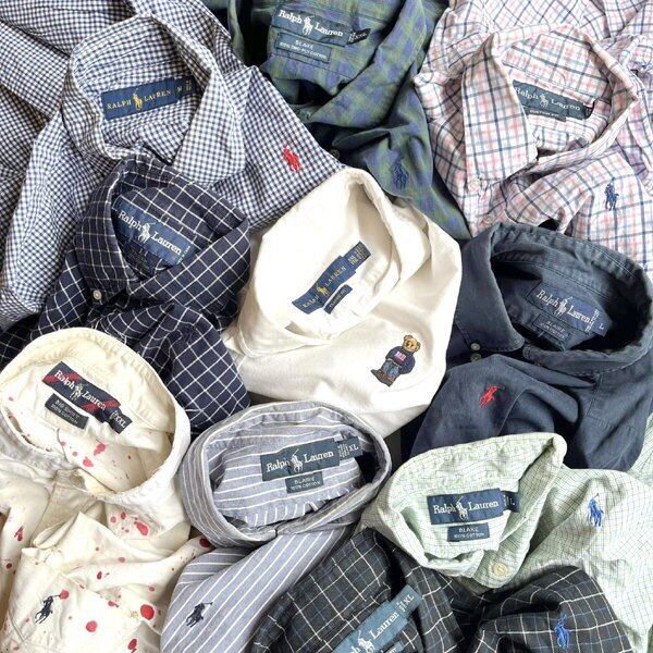 1点物◆ラルフローレン長袖POLO黄緑チェックシャツ古着メンズL/XLレディースOKアメカジ90sストリートスポーツRALPH Laurenブランド白348472