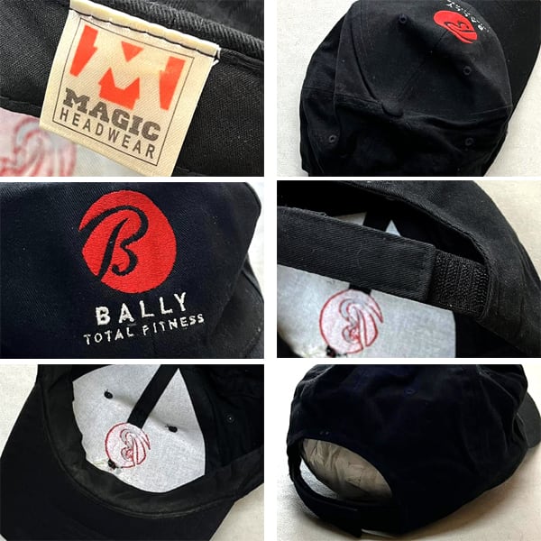 1点物◆BALLY FITNESS黒赤ベースボールキャップ帽子US古着メンズレディースOKアメカジブランド90sストリート中古トラッカーキャップ348529