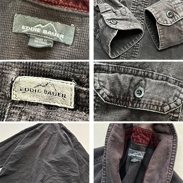 1点物◆黒エディーバウアー格子柄コーデュロイ長袖シャツ古着メンズL/XLレディースOKアメカジUSストリートMixアウトドアUSAブランド348547