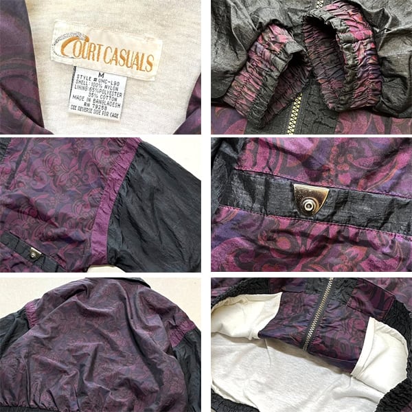1点物◆ビンテージ90s切替しデザイン総柄ナイロンジャケット古着メンズレディースOKアメカジ90sストリートMixスポーツアウター黒紫348695