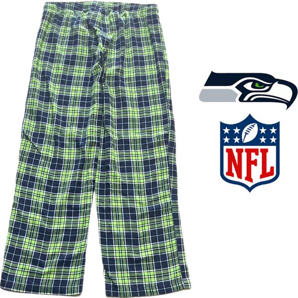 1点物◆シーホークスNFL柄パジャマパンツ紺緑イージーパンツ古着メンズL/XLレディースOKアメカジ90sストリート/スポーツ中古アメフト348720