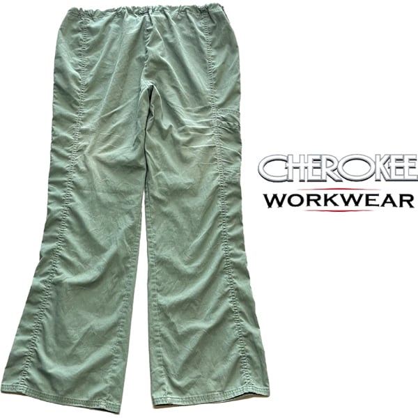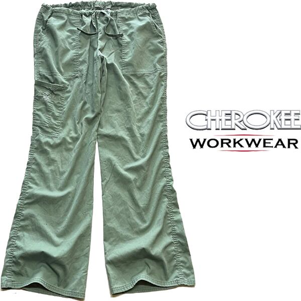 1点物◆CHEROKEEカーゴパンツ緑カラーパンツ古着メンズL/XLレディースOKアメカジ90sストリート/スポーツUSAワークパンツ中古スクラブ348754