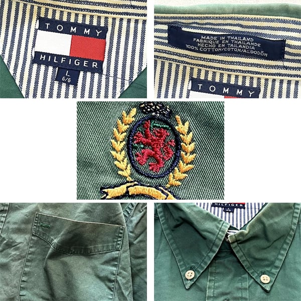 1点物◆90sトミーヒルフィガー緑ビンテージ雰囲気系シャツ古着LメンズXLレディースOKアメカジ90sストリート/スポーツUSAブランド中古348914