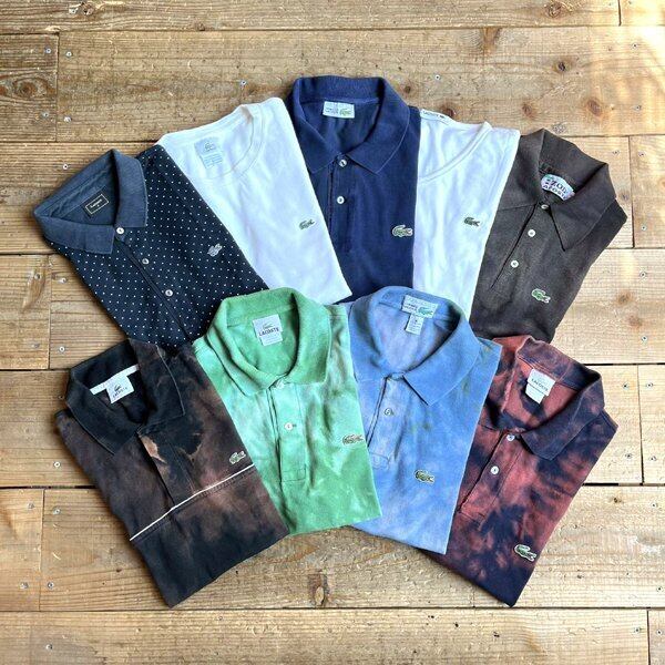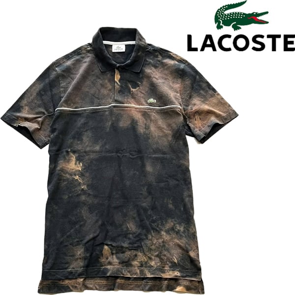 1点物◆ラコステLacoste黒タイダイポロシャツ古着MLメンズ4レディースOKアメカジ90sストリート中古ワニワンポイントブランドTシャツ349021