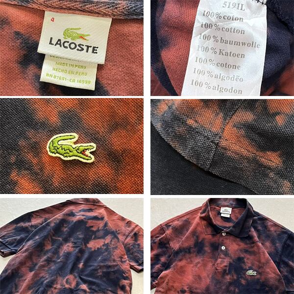 1点物◆ペルー製ラコステLacosteタイダイ紺ポロシャツ古着MLメンズ4レディースOKアメカジ90sストリート/スポーツ/ワニワンポイント349018