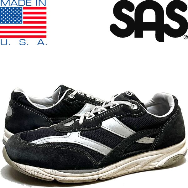 1点物◆USA製SASサンアントニオシューメーカーズ黒スニーカー古着29メンズレディースOKアメカジ90sストリート/スポーツ/サスシューズ349062