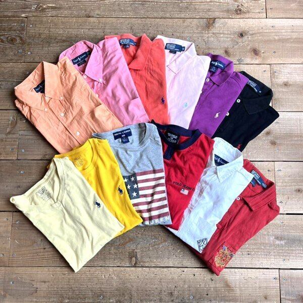 1点物◆ラルフローレンPOLO黄色ポニーTシャツ古着メンズSMレディースOKアメカジ90sストリート/スポーツUSAブランド中古ポロシャツ349089