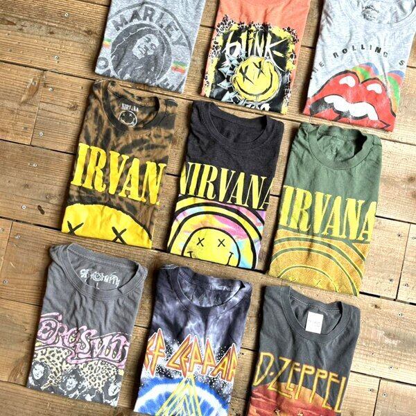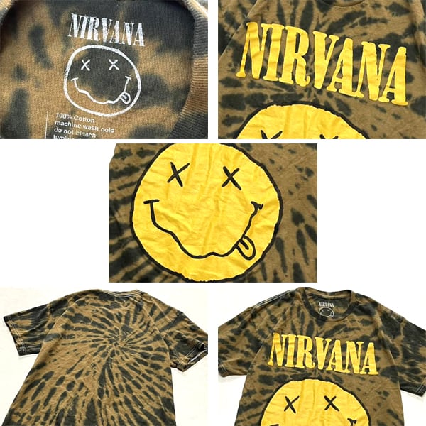 1点物◆ニルヴァーナ黒茶タイダイ黄スマイルプリントTシャツ古着メンズSMレディースOKアメカジ90sストリート/ロックT/バンT/バンドT349192