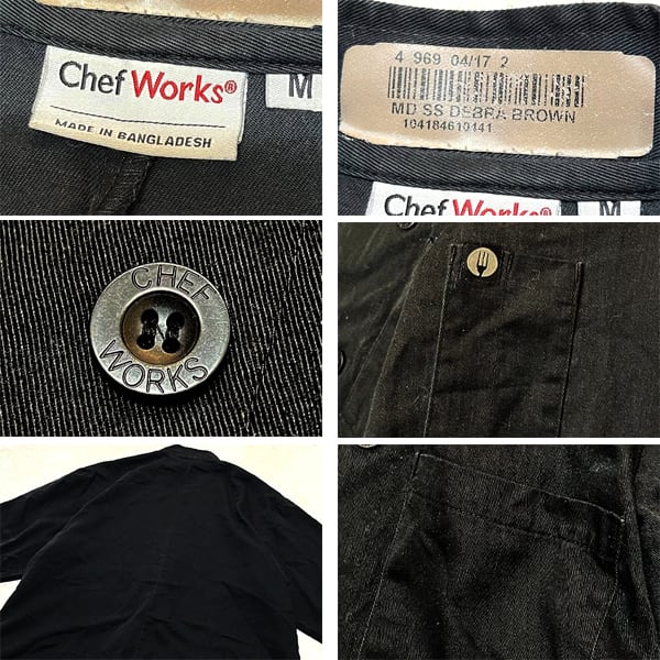 1点物◆Chef Works黒シェフシャツ半袖コックシャツ古着メンズMLレディース/アメカジブランド90sストリートUSブランド中古ピーコート349406