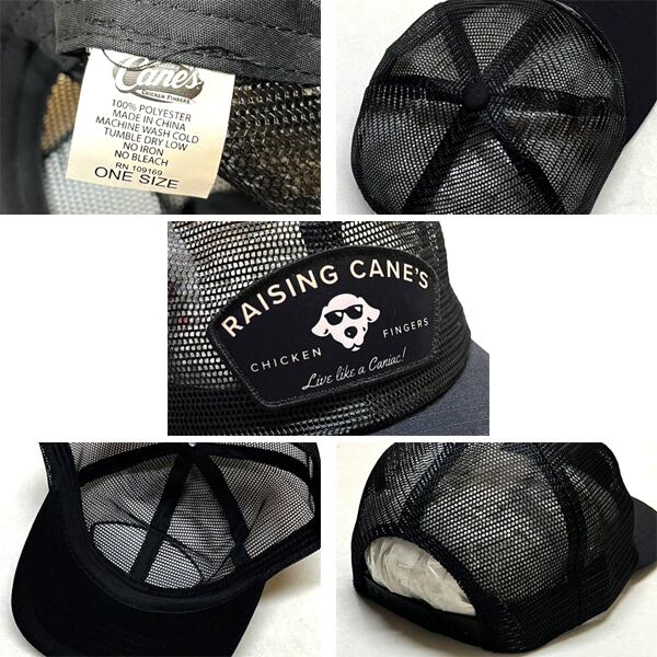 1点物◆Raising Cane's黒オールメッシュキャップ帽子US古着メンズレディースOKアメカジ90sストリート/スポーツブランド中古ブラック349419