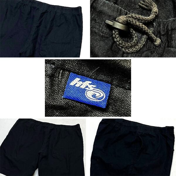 1点物◆HFSドローコード付リネンショーツ黒ショートパンツ古着メンズXLレディースOKアメカジ90sストリート/スポーツ水着ブランド中古349445