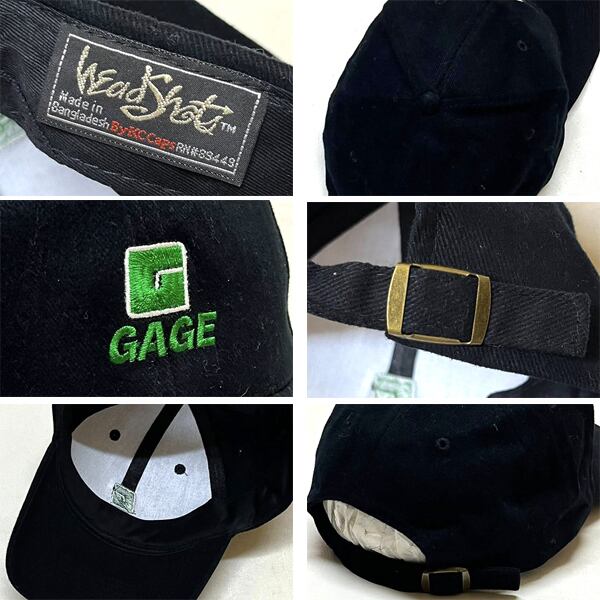 1点物◆ゲージ緑GAGE黒ベースボールキャップ帽子USA古着メンズレディースOKアメカジ90sストリート/スポーツブランド中古ブラック企業349487
