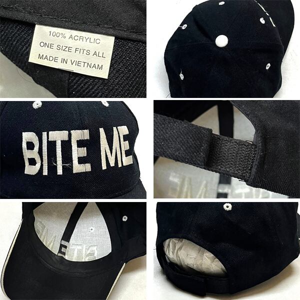1点物◆Bite Meバイトミー黒白ベースボールキャップ帽子US古着メンズレディースOKアメカジブランド90sストリートスポーツ/アウトドア349674
