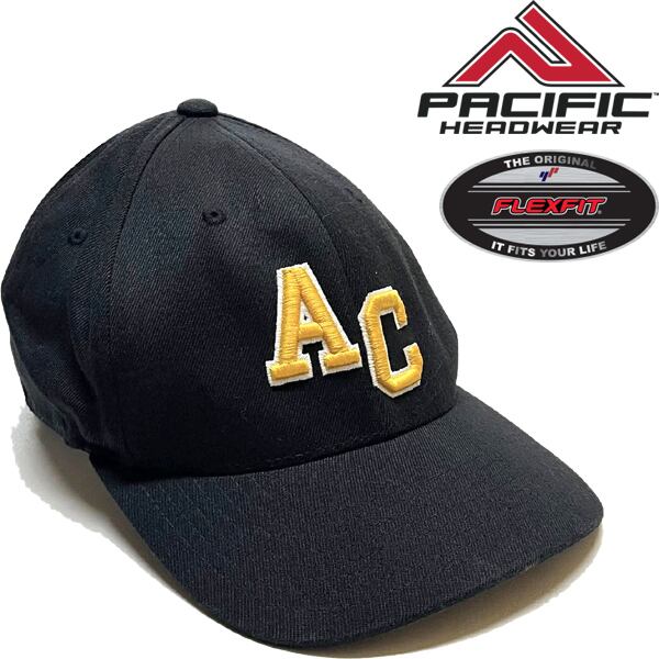 1点物◆フレックスフィットAC黒ベースボールキャップ帽子US古着メンズレディースOKアメカジブランド90sストリートスポーツアウトドア349672