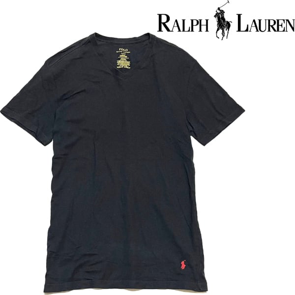 1点物◆POLOラルフローレンVネック黒ポニーTシャツ古着LメンズXLレディースOKアメカジ90sストリート/スポーツUSブランド中古ポロ半袖349719