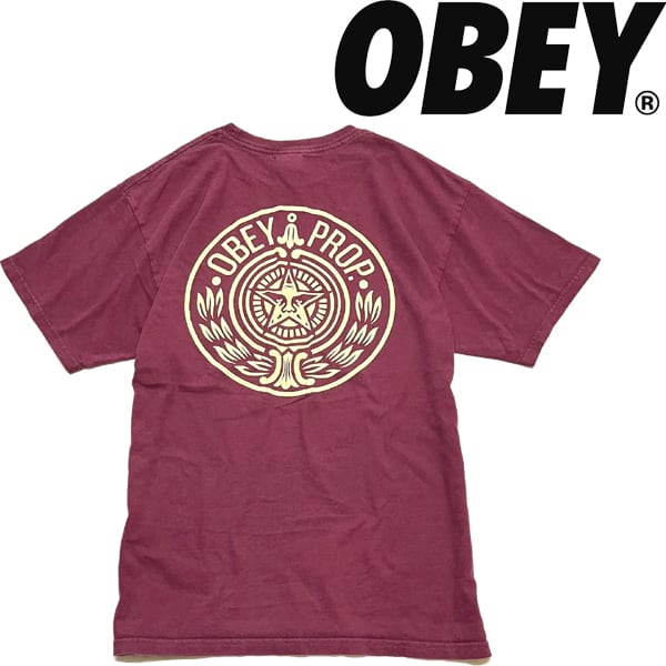 1点物◆オベイOBEYバックプリントTシャツ古着メンズMLレディースOKアメカジ90sストリート/スポーツMixスケートUSAブランド中古エンジ349771