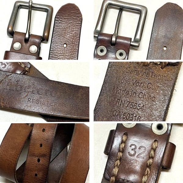 1点物◆アバクロA&Fバックル付き肉厚ビンテージレザーベルト茶小物USA古着メンズ32レディースOKアメカジ90sストリートUSブランド中古349789