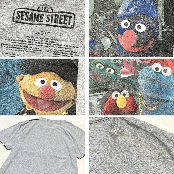1点物◆セサミストリートSESAMI StグレープリントTシャツ古着メンズLレディースOKアメカジ90sストリート/スポーツ中古キャラクター灰349832