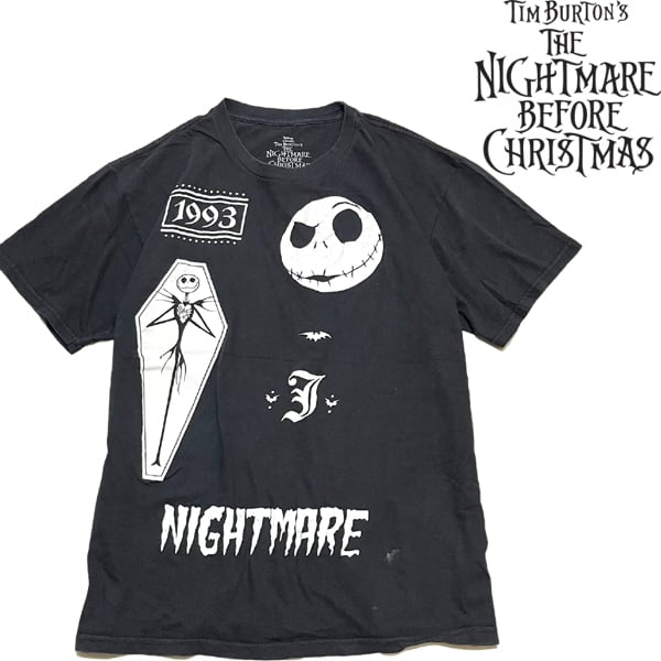1点物◆ディズニー黒ナイトメアービフォアクリスマスプリントTシャツ古着メンズLレディースOKアメカジ90sストリート/スポーツキャラ349831