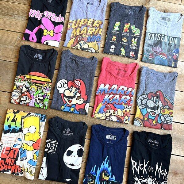 1点物◆マリオMarioキャラクタープリントTシャツ古着メンズMLレディースOKアメカジ90sストリート/スポーツUSATVマンガ漫画アニメ灰色349839 | 古着屋カチカチ 東京都北区 JR王子駅前で実店舗展開中 通販もOK Tokyo Japan