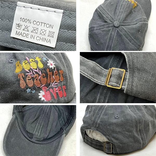 1点物◆Best Teacher Everくすみ色ベースボールキャップ帽子USA古着メンズレディースOKアメカジ90sストリート/アウトドアブランド灰349845