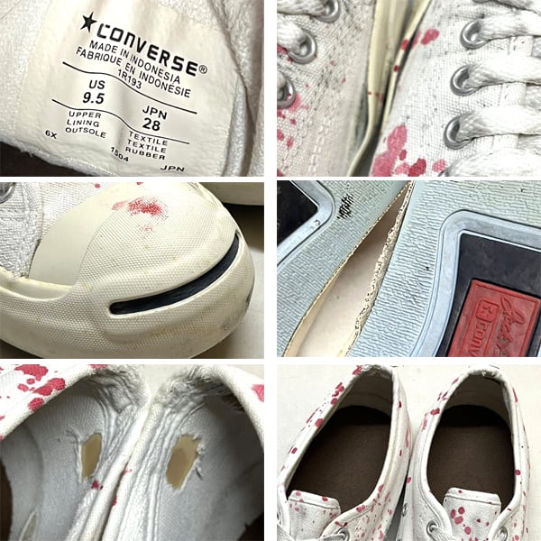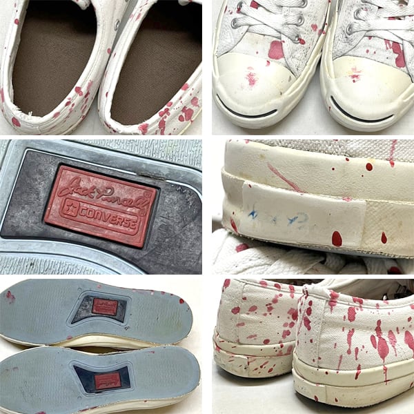 1点物◆コンバース中古ジャックパセル赤ペンキアート雰囲気系シューズ古着28メンズレディースOKアメカジ90sストリートUSスニーカー349859 | 古着屋カチカチ 東京都北区 JR王子駅前で実店舗展開中 通販もOK Tokyo Japan