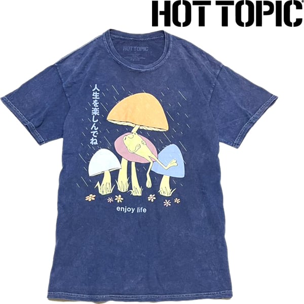 1点物◆人生楽しんでねHOT TOPIC紺プリントTシャツ古着メンズMLレディースOKアメカジ90sストリート/スポーツUSAブランド中古ネイビー349868