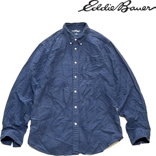 1点物◆エディーバウアー長袖ビッグサイズ無地紺シャツ古着LメンズXLレディースOKアメカジ90sストリート/スポーツアウトドアブランド349879