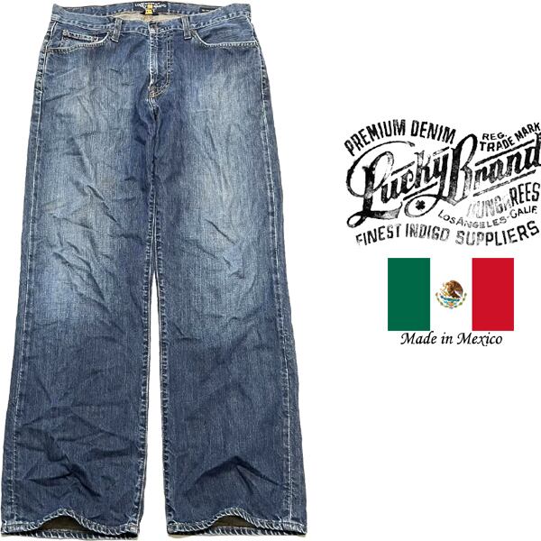 1点物◆メキシコ製ラッキーブランドY2Kデニムパンツ革パッチジーンズ古着メンズ34レディースOKアメカジ90sストリート/スポーツ中古US349899