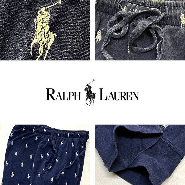 1点物◆ラルフローレンPOLOブランドロゴ紺パジャマパンツ古着メンズMLレディースOKアメカジ90sストリート/イージーパンツ柄ブランド349917