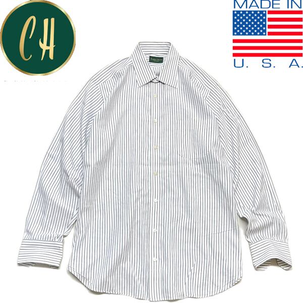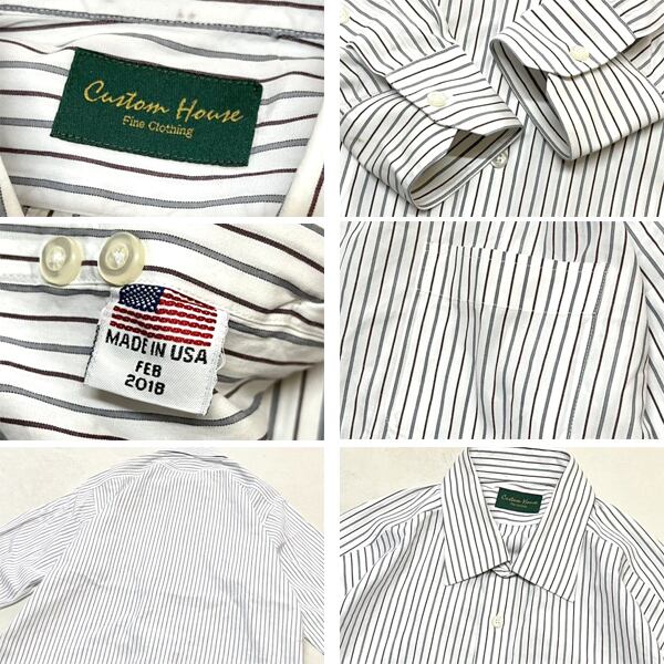 1点物◆USA製Custom House長袖ストライプシャツ古着LメンズXLレディースOKアメカジブランド90sストリート/スポーツ白シャツブランド349939