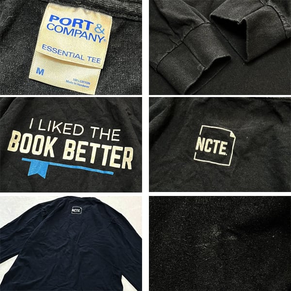 1点物◆PORT黒NCTEバックプリント長袖ロンTシャツ古着メンズMLレディースOKアメカジ90sストリートMixスポーツUSAブランド中古BOOK本349981