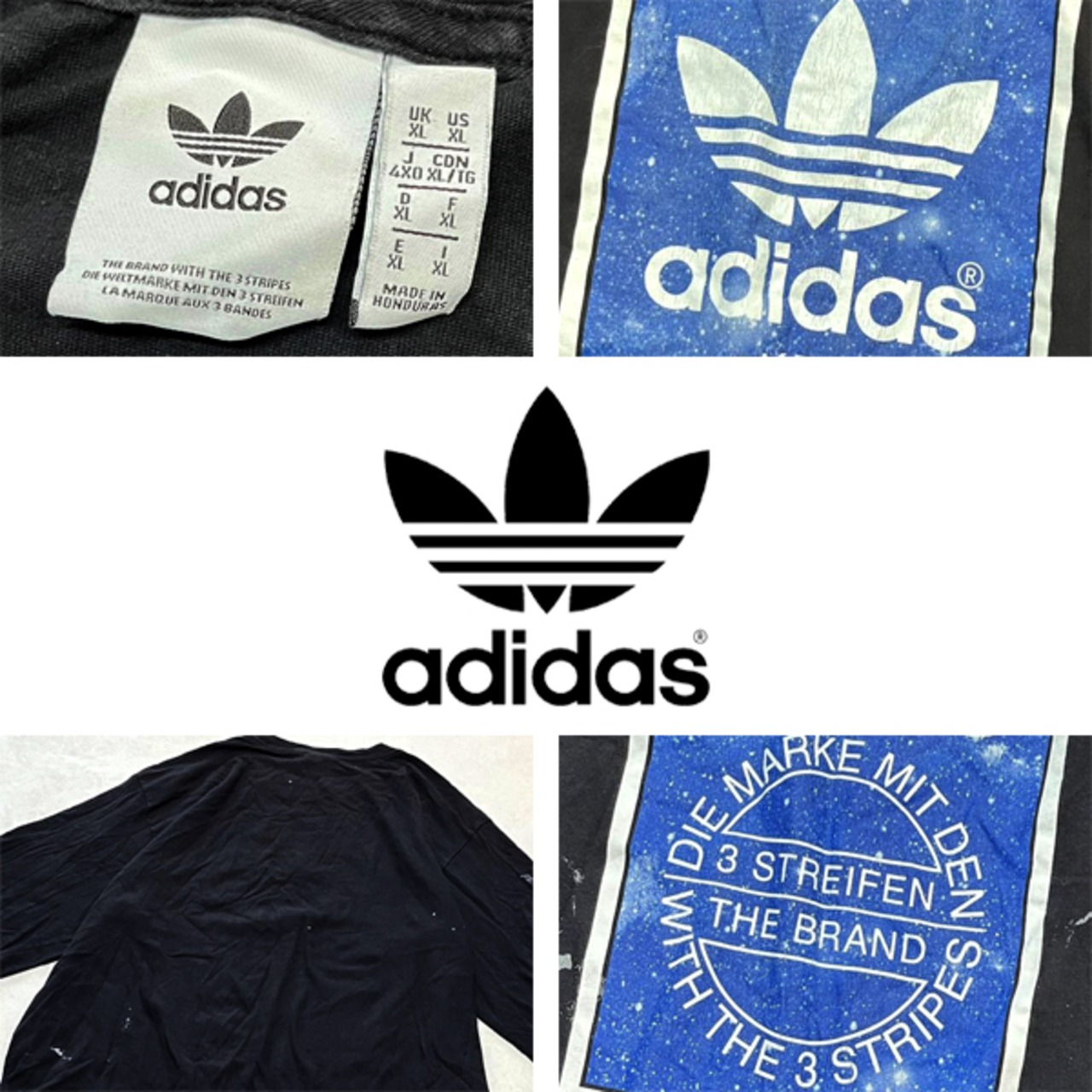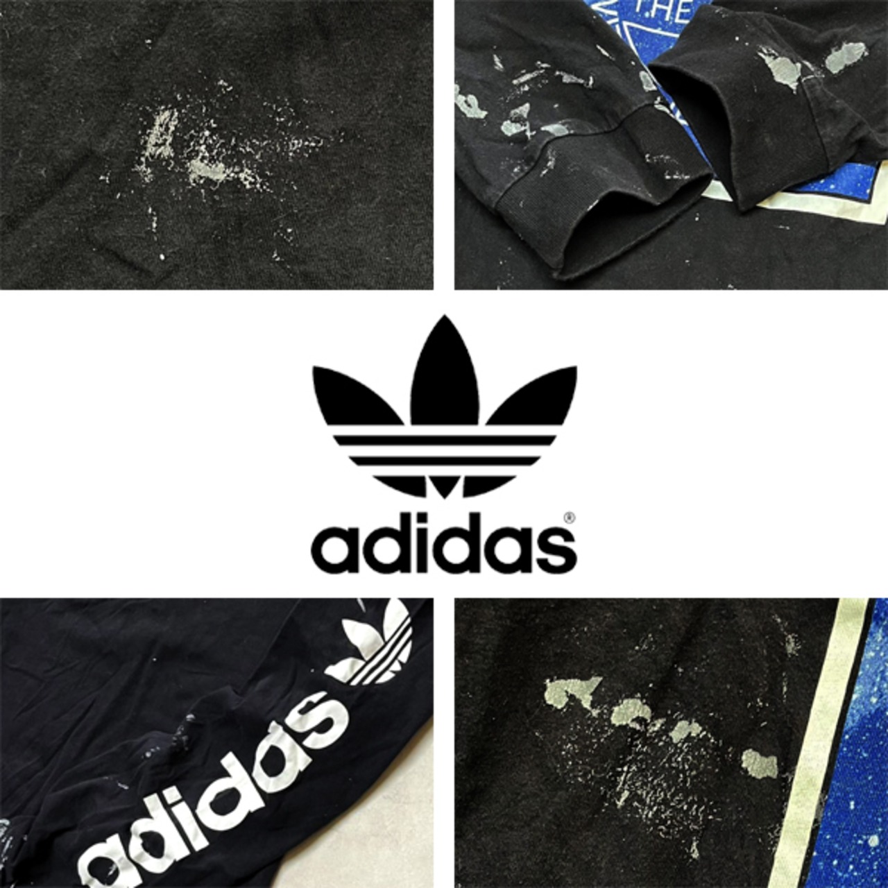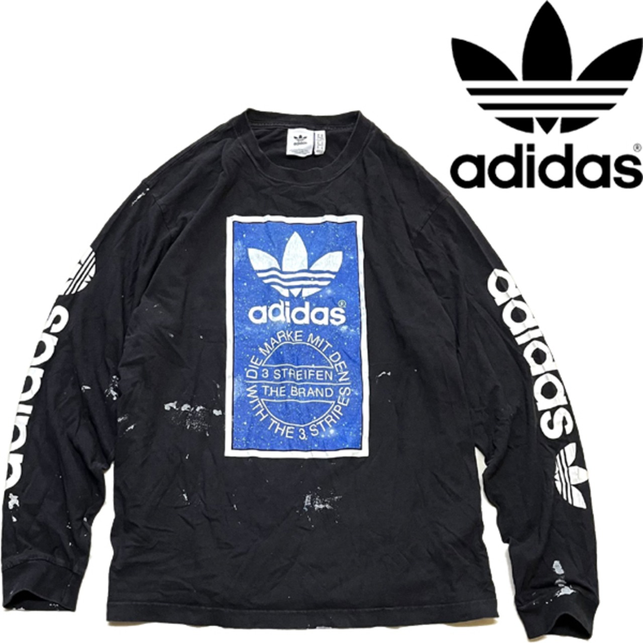 1点物◆アディダス黒adidasペンキアート長袖ロンTシャツ古着メンズXXLレディースOKアメカジ90sストリートMixスポーツUSAブランド中古349975
