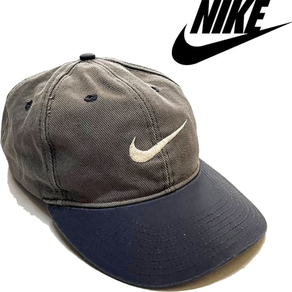 1点物◆NIKEナイキ90s雰囲気系ツートンキャップ帽子US古着メンズレディースOKアメカジ90sストリートブランド日焼け中古グレー黒紺349994