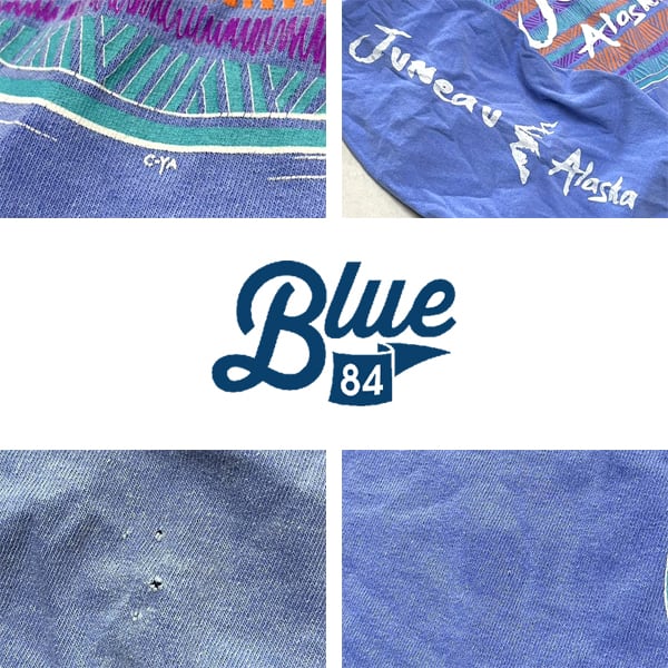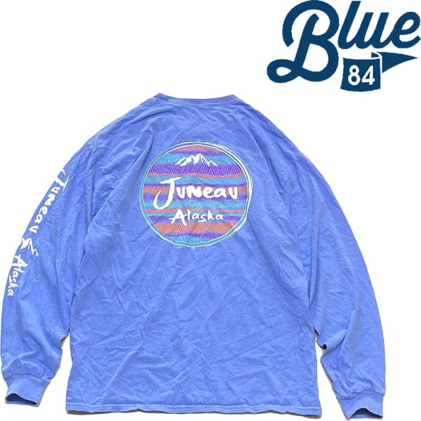 1点物◆BLUE 84バックプリント袖プリ長袖ロンTシャツ古着メンズXLレディースOKアメカジブランド90sストリートUSAブランドくすみ青362001 | 古着屋カチカチ 東京都北区 JR王子駅前で実店舗展開中 通販もOK Tokyo Japan
