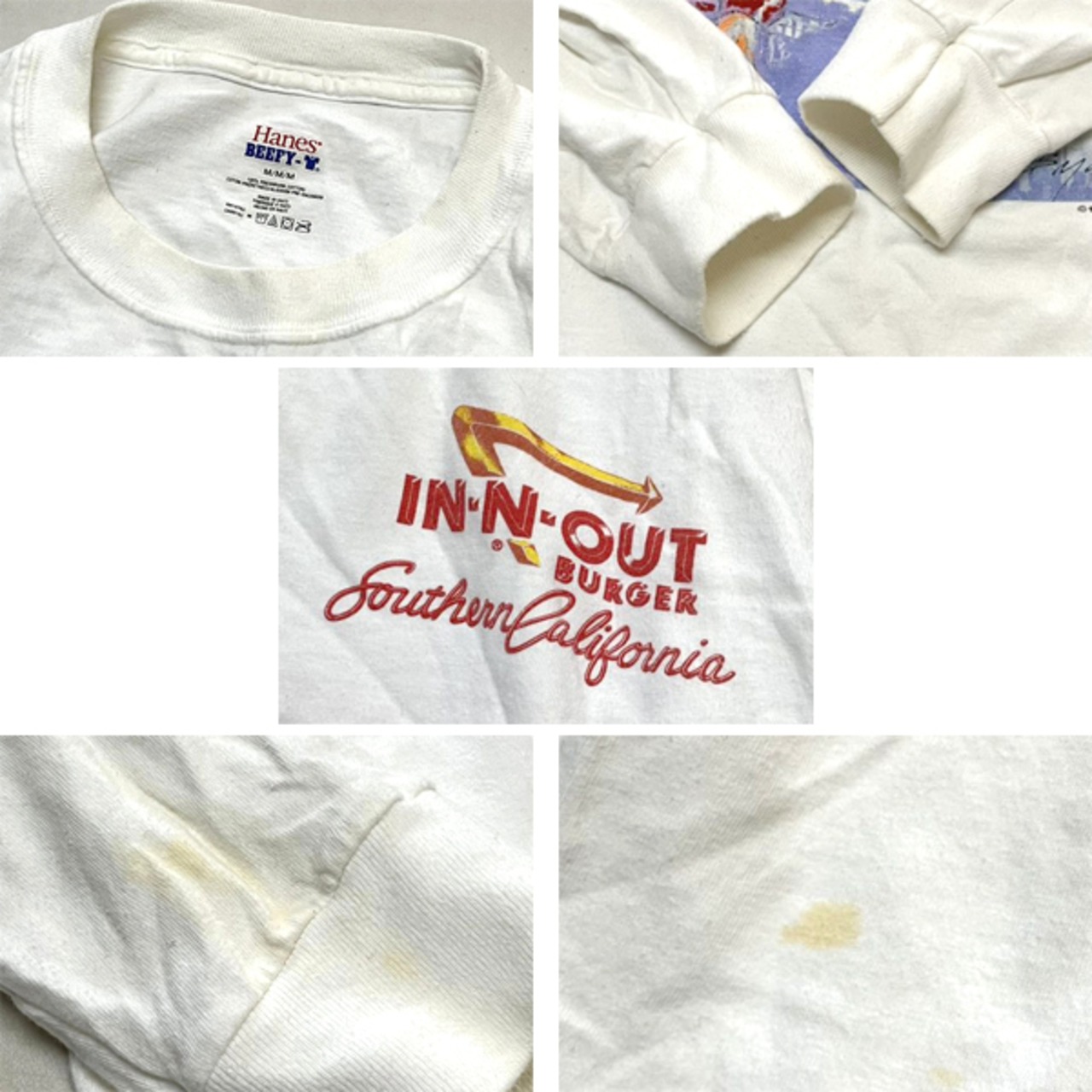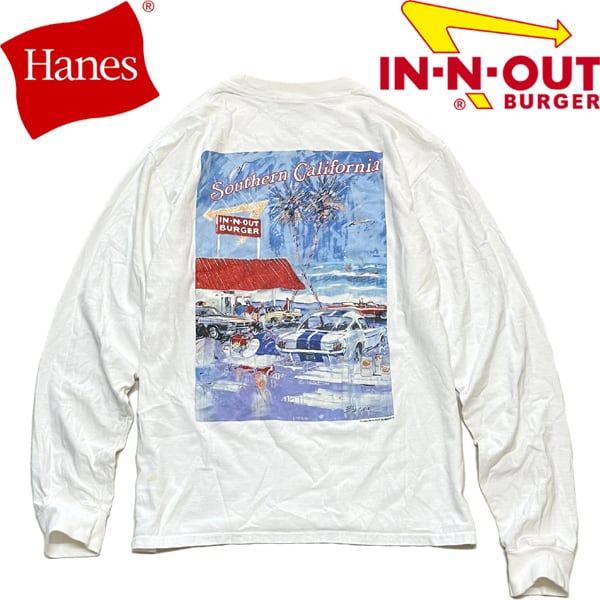 1点物◆へインズ白インアンドアウトバーガー長袖ロンTシャツ古着メンズMLレディースOKアメカジブランド90sストリート中古ブランド紫349996