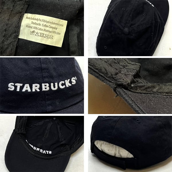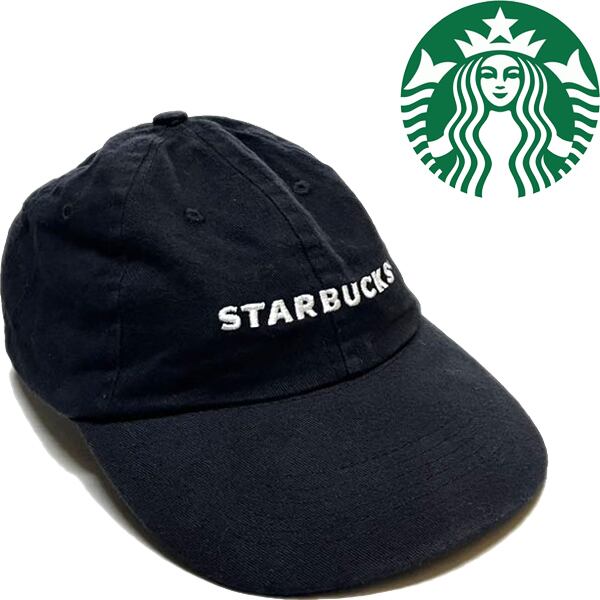1点物◆スターバックス黒STARBUCKS浅めベースボールキャップ帽子/古着メンズレディースOKアメカジ90sストリート/スポーツUSAブランド362037