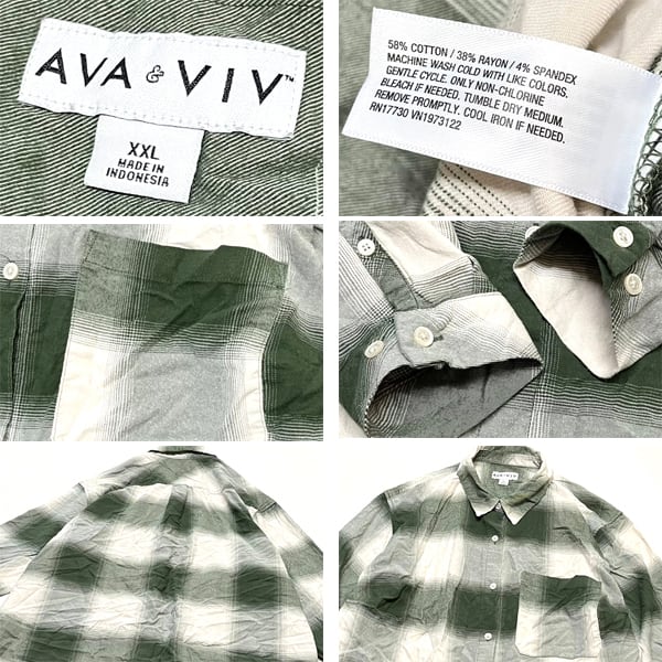 1点物◆AVA&VIVオリーブ緑オンブレチェックシャツ古着レディースXXLメンズOKアメカジ90sストリート/スポーツ中古ブランド長袖ロンT362056