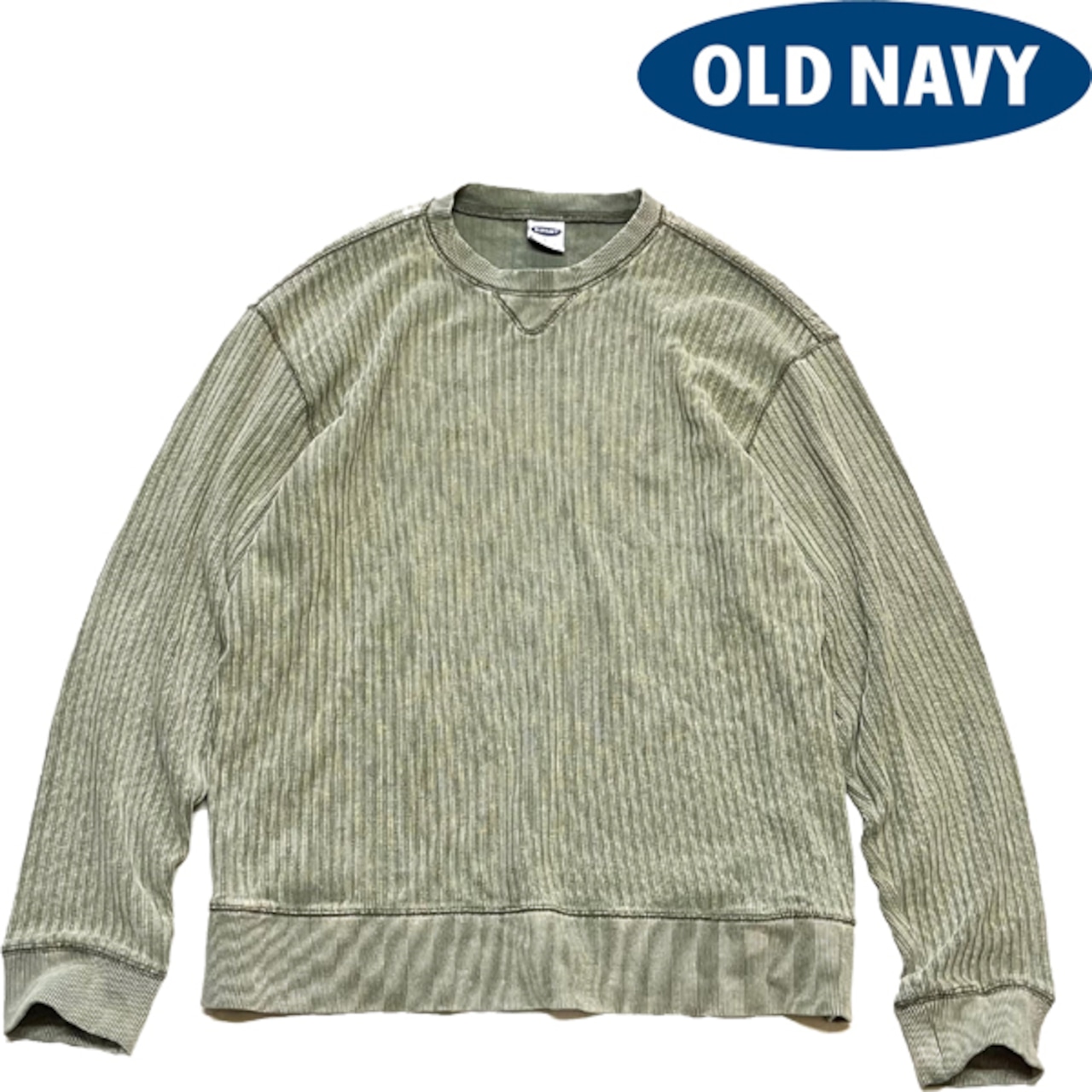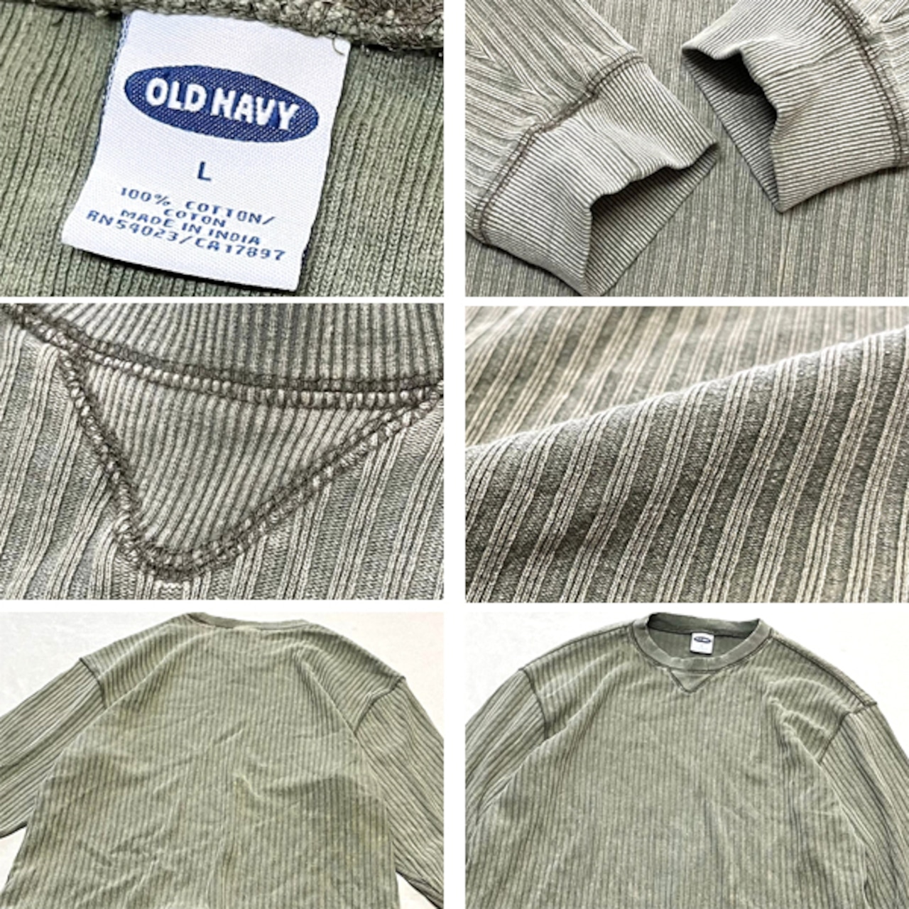 1点物◆GAP系オールドネイビー前Vリブ編み長袖ロンTシャツ古着LメンズXLレディースOKアメカジ90sストリート/スポーツUSスウェット緑362065