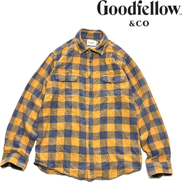 1点物◆GOODFELLOWネルシャツ長袖ブロックチェックシャツ古着メンズLレディースOKアメカジ90sストリート/スポーツブランド黒オレンジ362148