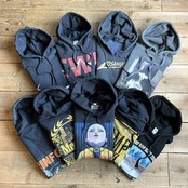 1点物◆袖プリント黒スウェットパーカー古着LメンズXLレディースOKアメカジ90sストリート/スポーツ中古トレーナNHLアイスホッケー362166