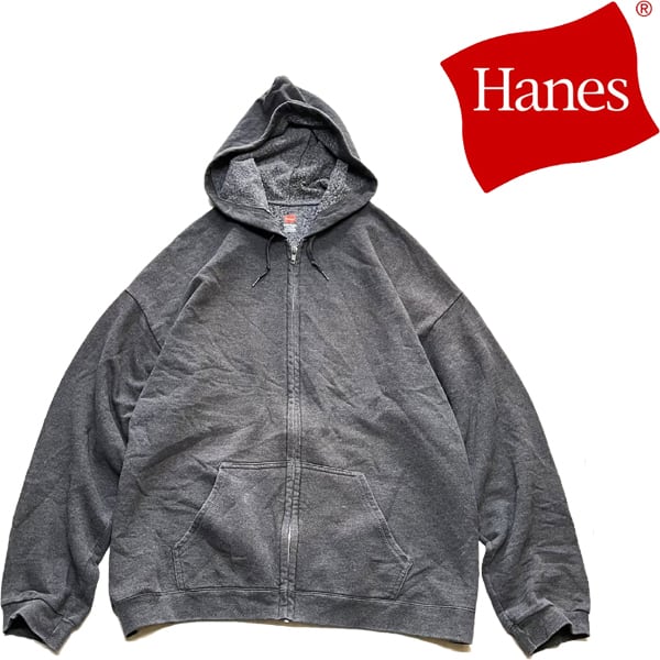 1点物◆ヘインズHANESグレー無地ジップアップパーカー古着メンズXLレディースOKアメカジ90sストリート/スポーツブランドUSトレーナー362251