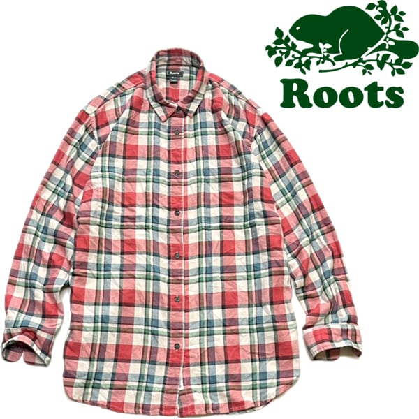 1点物◆ルーツROOTSネルシャツ長袖チェックシャツ古着メンズレディースOKアメカジ90sストリート/スポーツUSAアウトドアブランド中古362277